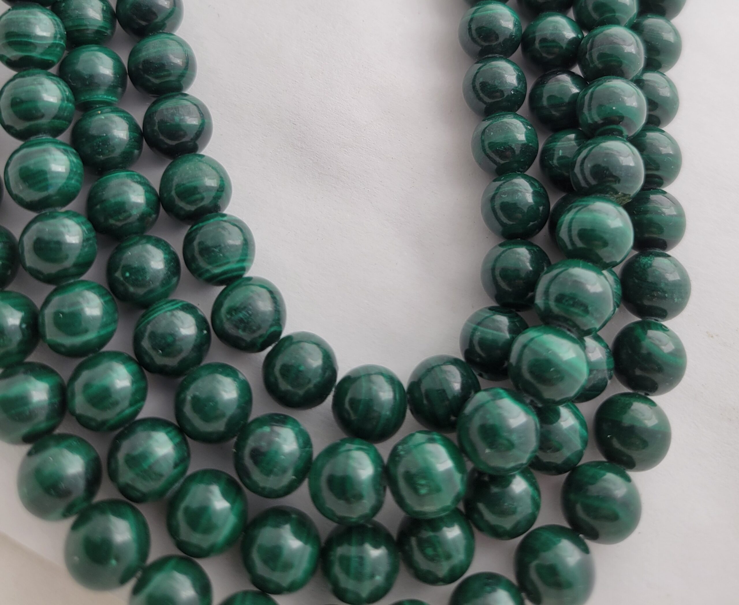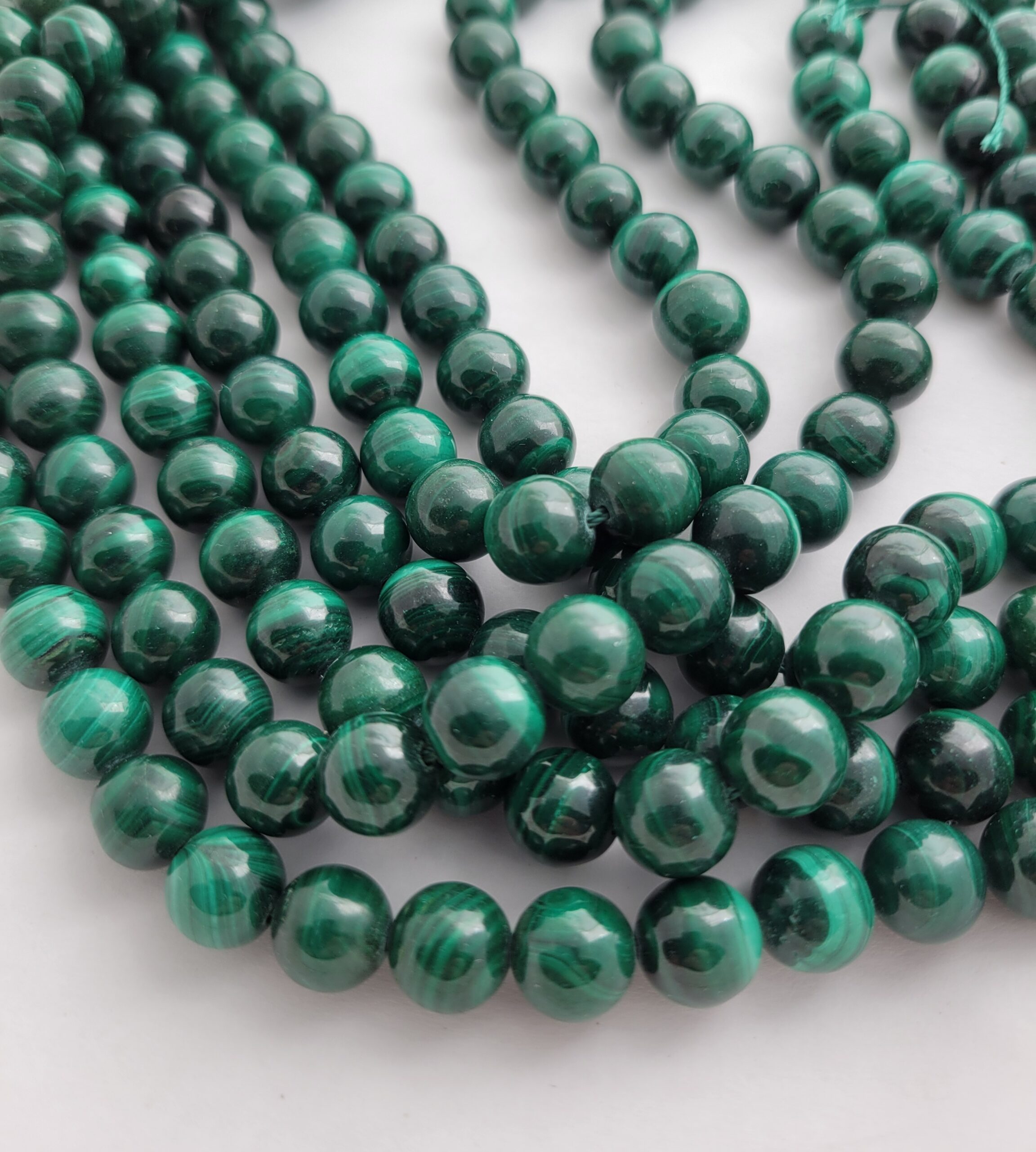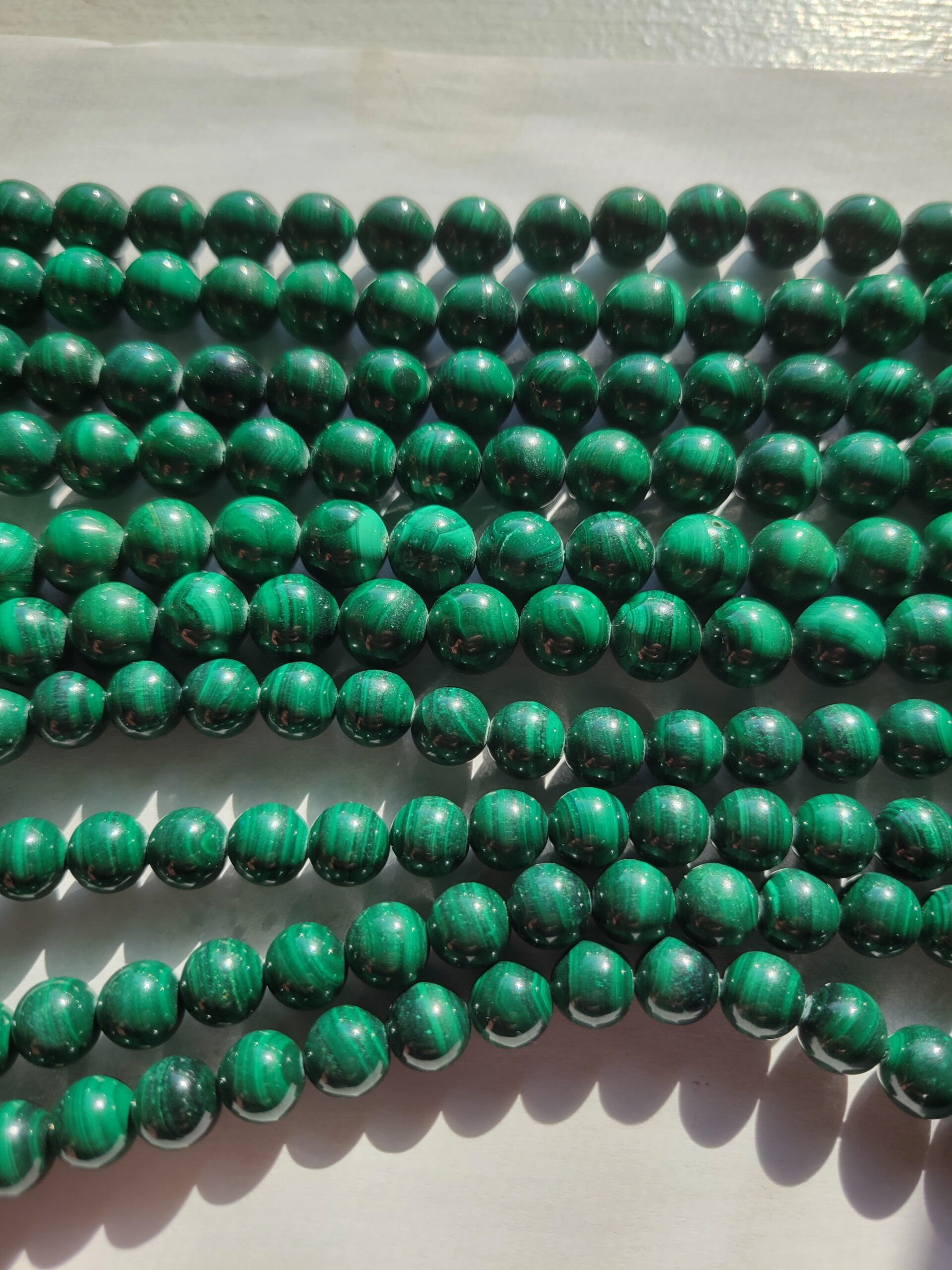 These Malachite beads are a nice dark green, with nice stripe color variation. The 8mm strands are 15.5 inches long and have approx. 48 beads per strand. The 10mm strands are the same length with approx. 40 beads per strand