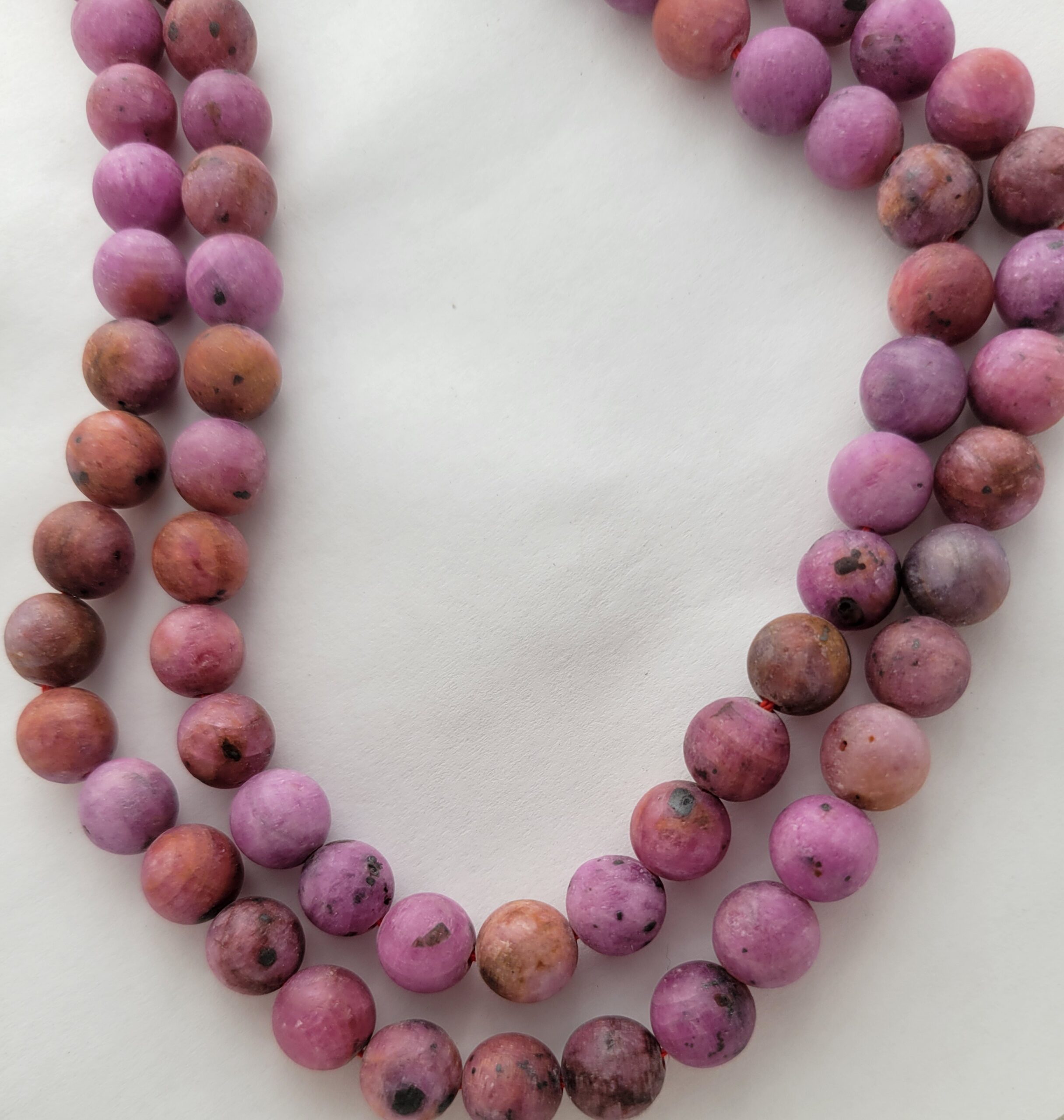 These are very nice Corundum Ruby bead strands. Strands are 15.5″ long with approx. 49 beads. This size and color can be difficult to find.
